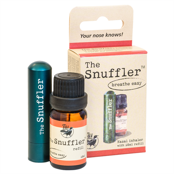 The Snuffler® is a quirky name for a new technology that delivers ancient wellness wisdom via natural essential oils: The metal inhaler is light, handy and always ready to deliver a blast of wellness anytime, anyplace.