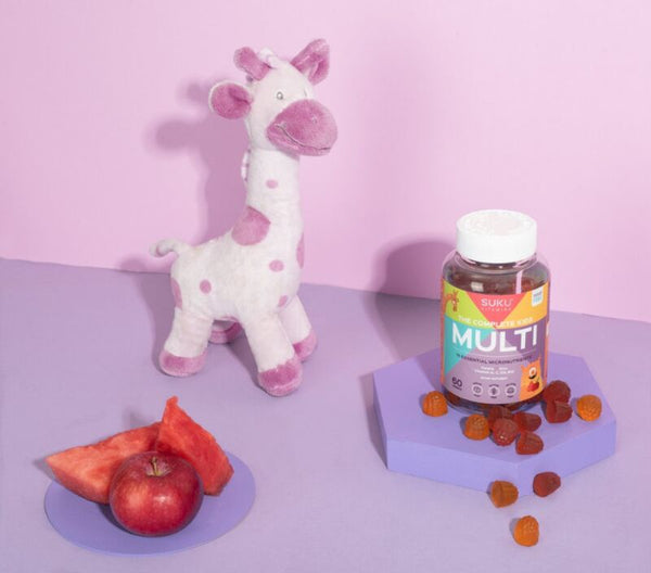 Description Suku Vitamins The Complete Kids Multi 60 Gummies Tropical Bonanza Flavour The perfect multi for your little ones. This specially formulated, sugar-free multi delivers your little ones with essential vitamins, minerals and prebiotic soluble fibre to support their everyday biological functions and also helps fill in nutritional gaps that may be missing from their everyday diet*. 60 Gummies Tropical...
