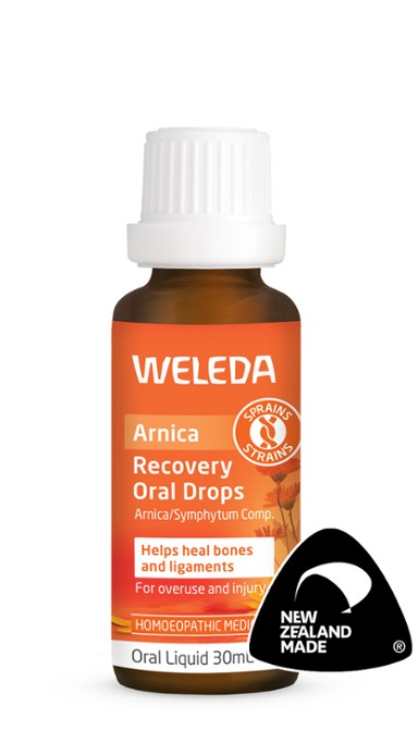 Weleda Arnica/Symphytum Comp. Oral Liquid 30ml   Helps heal injuries to bone, cartilage, ligaments and muscles, eg. sports injuries, sprains, surgery, tendinitis, RSI (OOS), broken bones.  Active Ingredients: Contains equal parts of: Allium cepa 3x; Arnica 3x; Ruta graveolens 3x; Symphytum, decoct. 3x; in water/ethanol base.   Dosage: Take 10 drops (children 12 to 14 years) or 15 drops (adult) 3...
