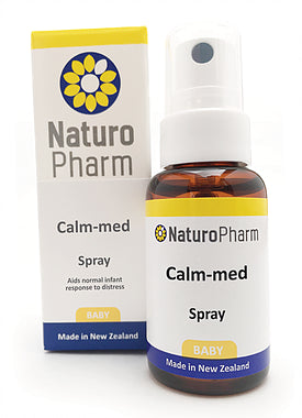 Naturo Pharm Calm-med assists normal infant response to distress and has beneficial calming and settling properties.     Beneficial for: assisting normal baby response distress helping to calm and sooth an infant Active Ingredients: Contains: homoeopathic potencies of Aconite 60x, Chamomilla 30x 60x, Cimicifuga Racemosa 60x and Hypericum 30x 60x.   Dosage: Use 1 or 2 sprays per dose orally...