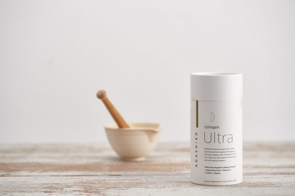 Packed with additional ingredients to nourish the skin and body, Adashiko Ultra is a super supplement that replenishes and boosts natural collagen production. Adashiko Ultra also provides superior antioxidant and anti-aging support for the whole body.  Daily use of Adashiko Ultra promotes all-over strength, elasticity, and anti-aging.