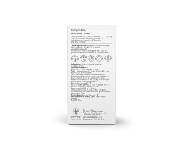 Saffron may help maintain wellbeing and a positive healthy mood and assist in the management of mood swings. It may also be beneficial during times of stress and may help promote mood balance.