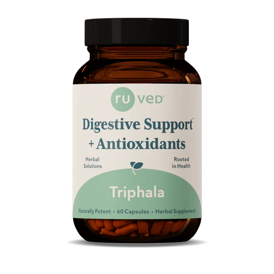 modern lifestyles and food choices do not always make for happy digestion. triphala is a blend of 3 powerful fruit native to india. combined, it promotes balance intestinal function and helps your immune system run smoothly by easing occasional bloating, indigestion, and imbalanced elimination. triphala provides phytonutrients for the gut, which promotes immune resilience, cardiovascular health, and balanced metabolism.